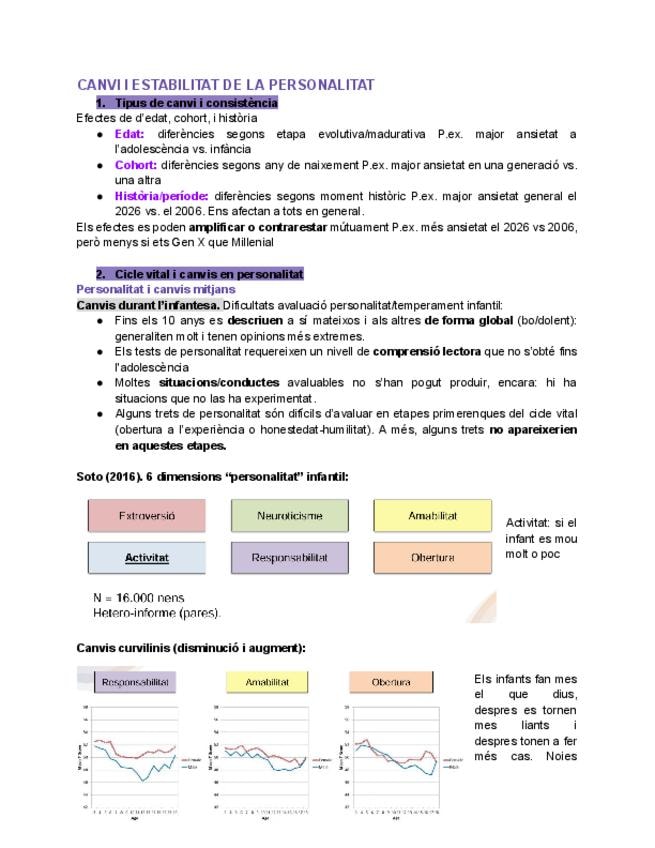 Apunts Diferències individuals, Tema 8. Canvi i estabilitat de la personalitat.