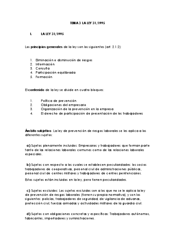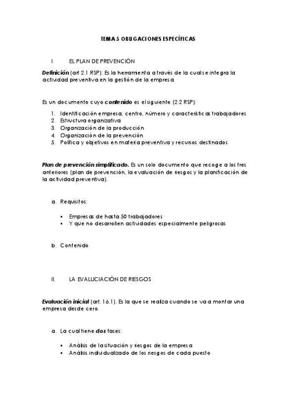 TEMARIO DE PREVENCIÓN DE RIESGOS LABORALES