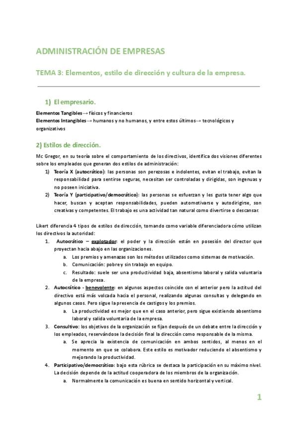 empresario, estilos de dirección, cultura de la empresa (funciones, niveles, elementos, tipos)...