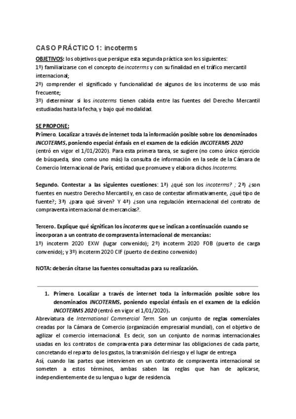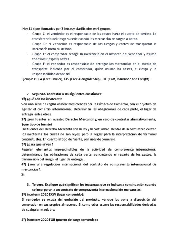 Primero. Localizar a través de internet toda la información posible sobre los denominados INCOTERMS, poniendo especial énfasis en el examen de la edición INCOTERMS 2020 (entró en vigor el 1/01/2020). Para esta primera tarea, se sugiere (no como único ejer