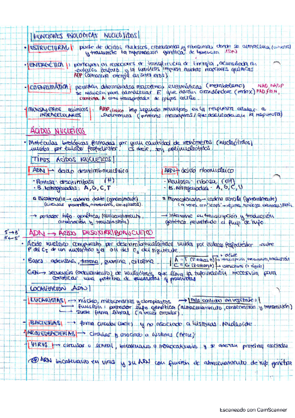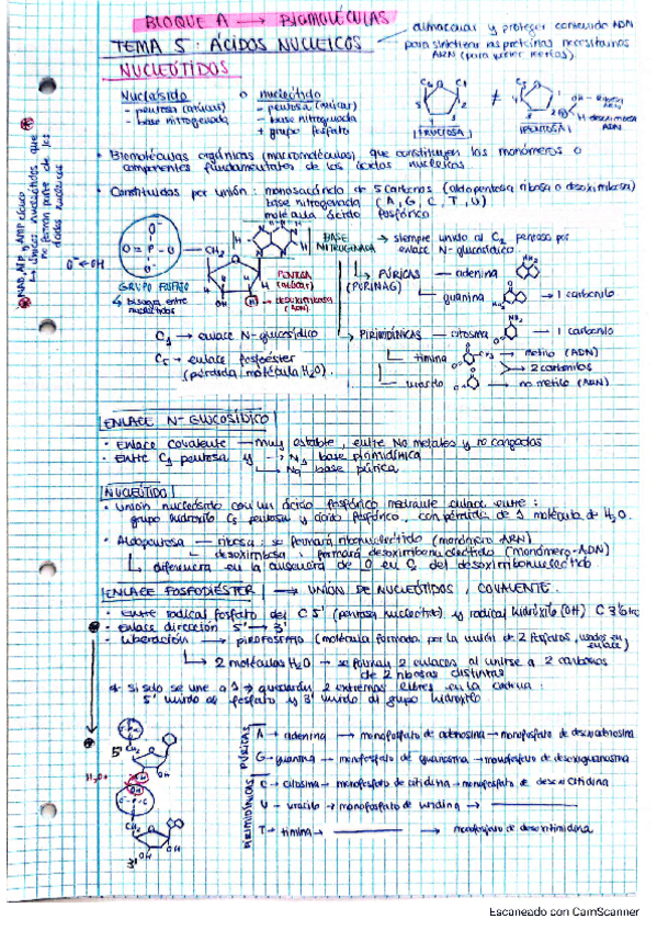 Apuntes bloque biomoléculas: nucleótidos, ácidos nucleicos, ARN, ADN y niveles organización ADN