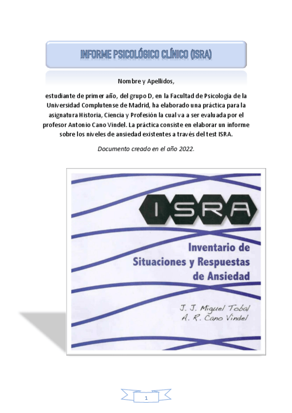He publicado nuevos trabajos de 1º Psicología: Historia, Ciencia y Profesión: INFORME-ISRA-DE-10.pdf