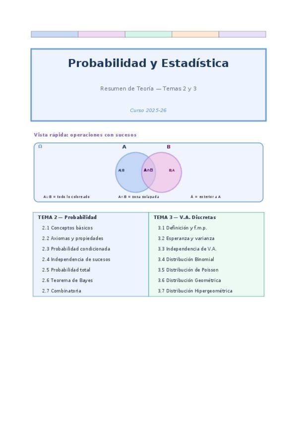 He publicado nuevos apuntes de 2º Probabilidad y Estadística: Resúmenes