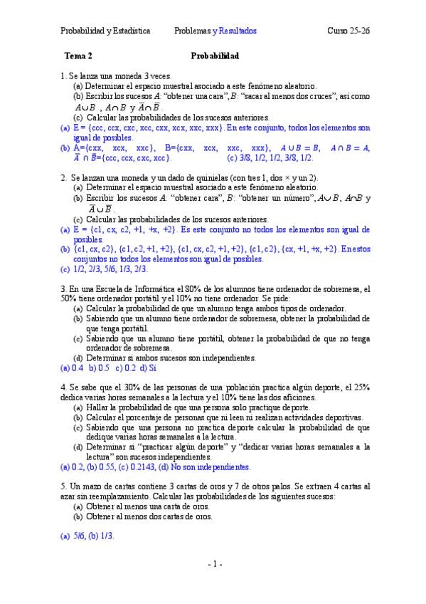 He publicado nuevos ejercicios de 2º Probabilidad y Estadística: Resultados ejercicios y prácticas