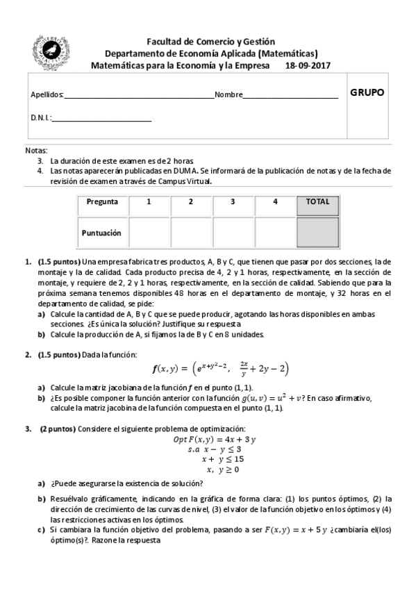He publicado nuevos examenes de 1º Matemáticas para la Economía y la Empresa: Examen-Febrero-2017-Resuelto.pdf