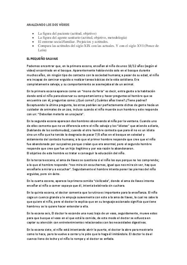 Analizar el vídeo de "EL MILAGRO DE ANNE SULLIVAN" y "EL PEQUEÑO SALVAJE"