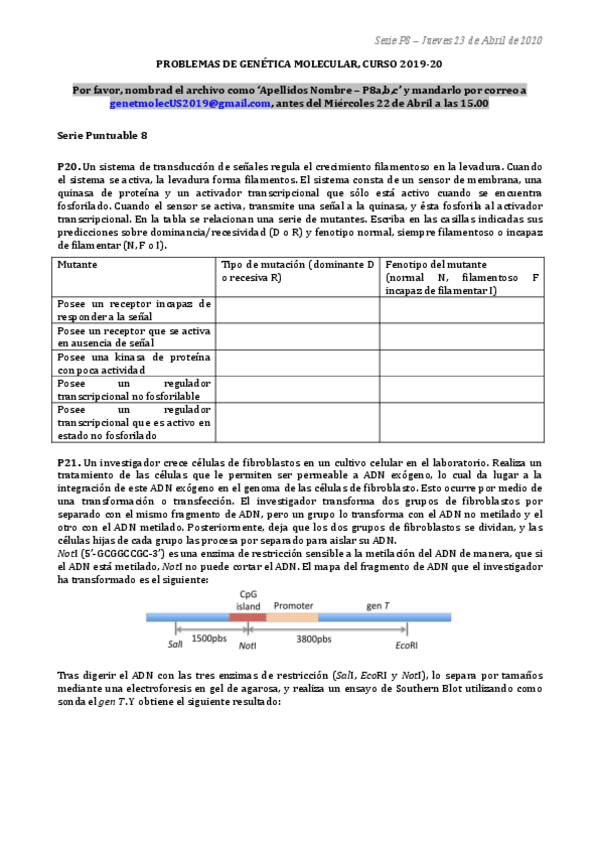 He publicado nuevos apuntes de 1º Genética Molecular: Serie 8 corregida TODOS LOS AÑOS