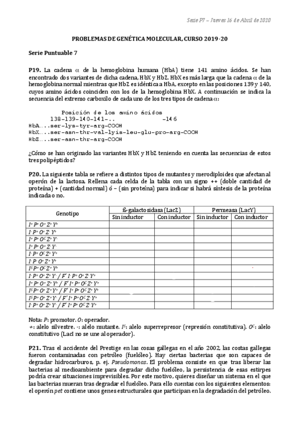 He publicado nuevos apuntes de 1º Genética Molecular: Serie 7 corregida TODOS LOS AÑOS
