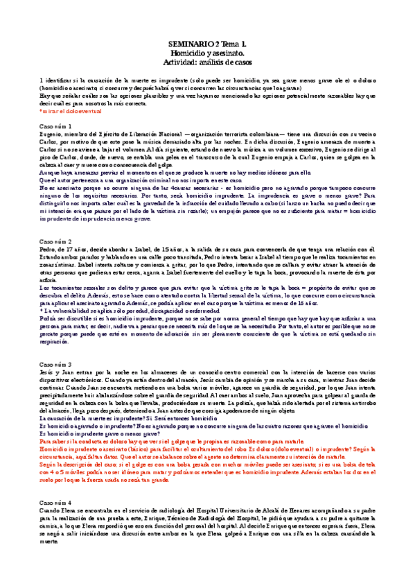 He publicado nuevos ejercicios de 3º Derecho Penal. Parte Especial: SEMINARIO-HOMICIDIO-ASESINATO.pdf
