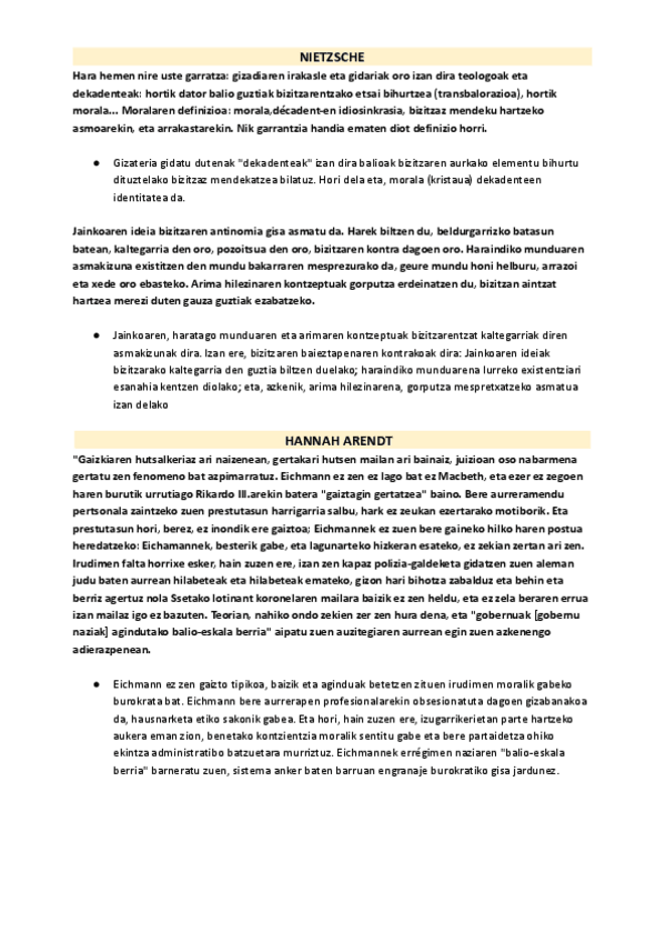 FILOSOFIA TESTU LABURPENAK SELEKTIBITATEA Hannah Arendt, Kant, San Agustin, Platon, Nietzsche