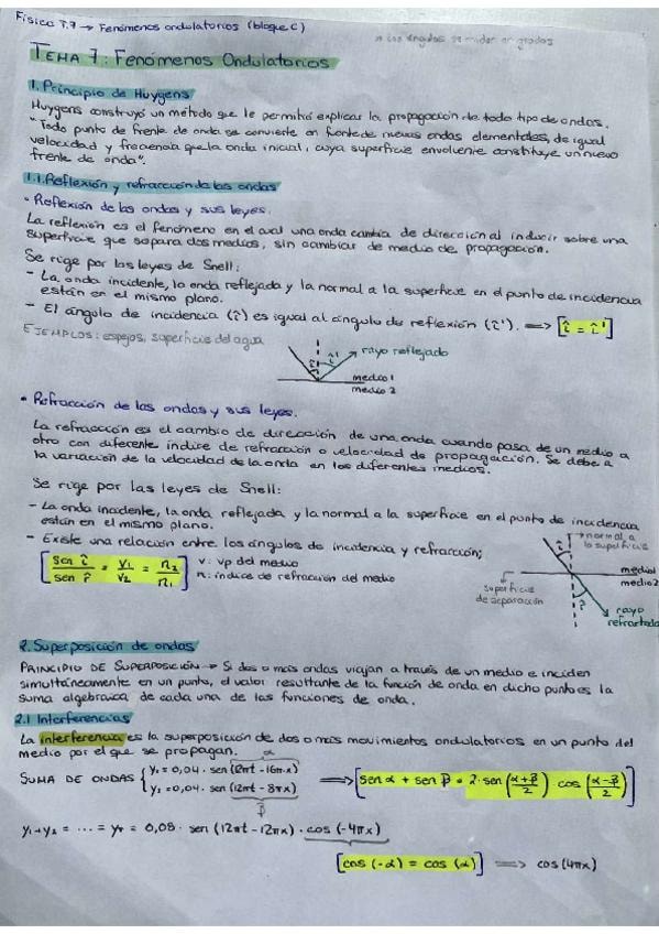 Principio de Huygens (reflexión y refracción de ondas; leyes de Snell). Superposición de ondas (interferencias). Interferencias de ondas armónicas coherentes. Ondas estacionarias (ecuaciones, aplicaciones a instrumentos de cuerda). Efecto Doppler.