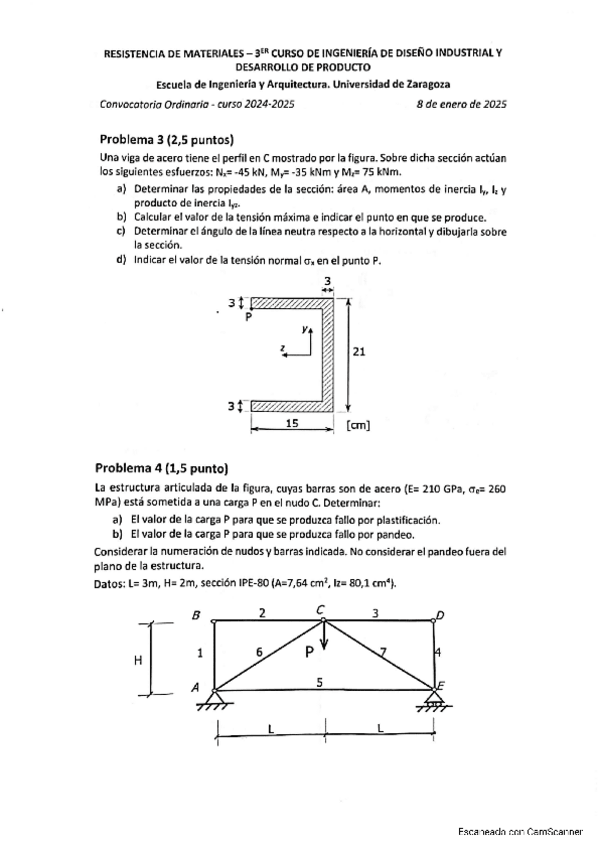 He publicado nuevos examenes de 3º Resistencia de Materiales: Examen-Resistencia-de-materiales-2a-conv.-2024-25.pdf