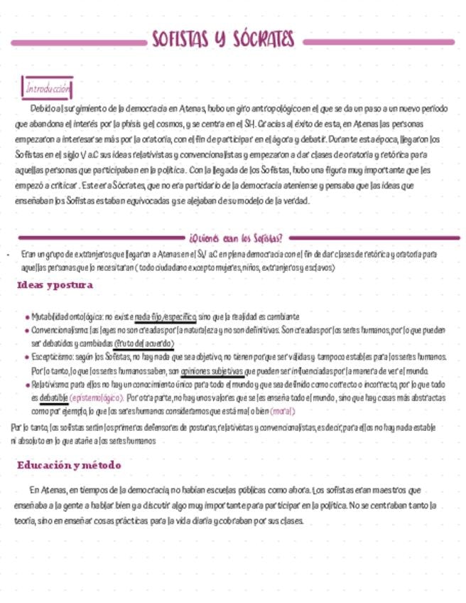 Apuntes sobre el debate entre los Sofistas y Sócrates, además de Platón. Están orientados para la PAU