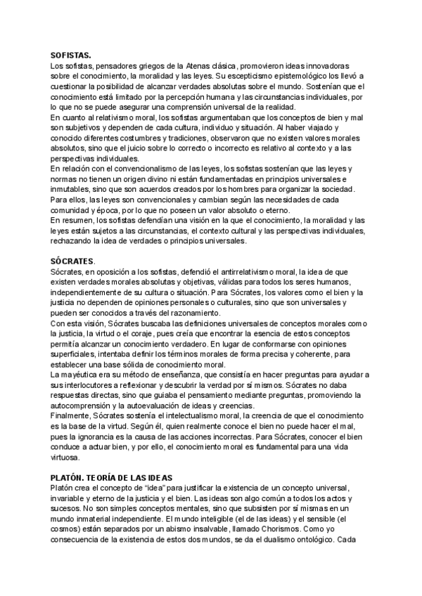 preguntas básicas de sele sobre los sofistas, Sócrates, Platón y Aristóteles
