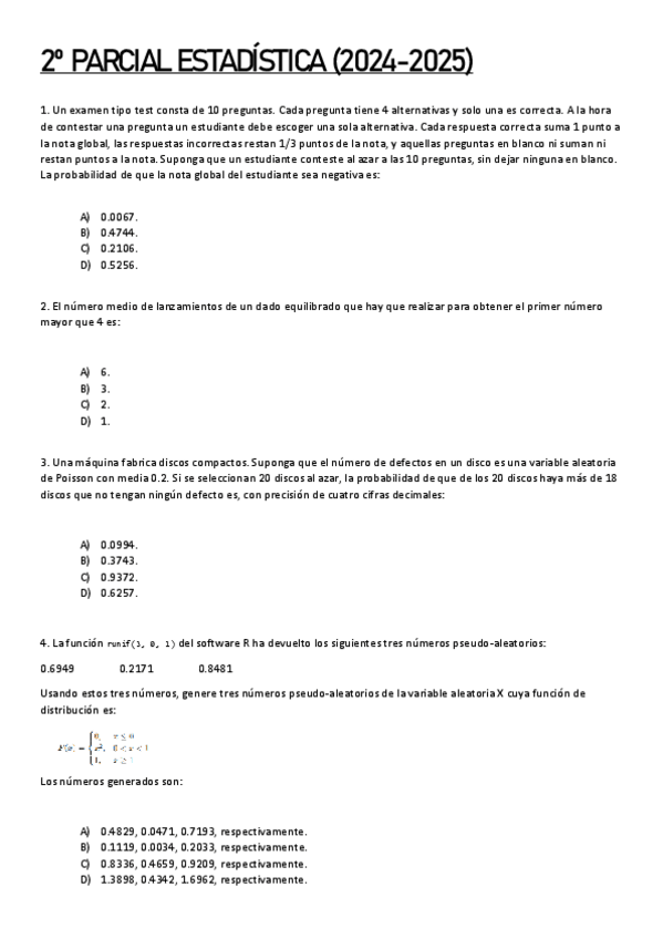 He publicado nuevos examenes de 1º Estadística: Exámenes (2024-2025)
