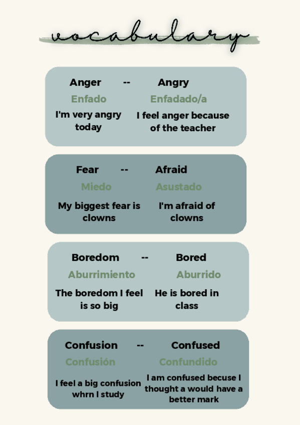diferentes tipos de vocabulario con la traducción y algunos ejemplos/ some vocabulary with the traducction and some examples