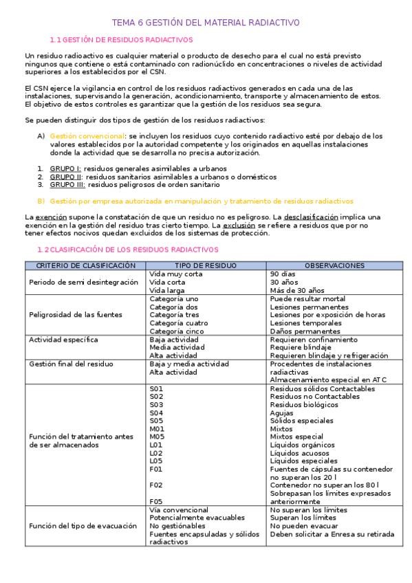 He publicado nuevos apuntes de Protección radiológica: TEMA 6 GESTIÓN DEL MATERIAL RADIACTIVO