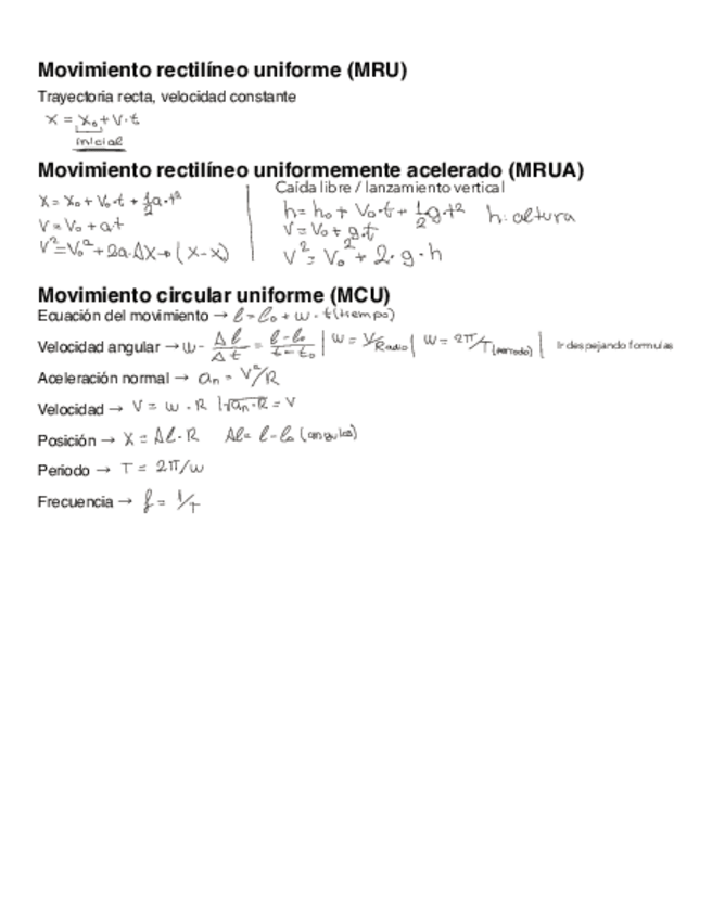 Formulas MRU,MRUA y MCU