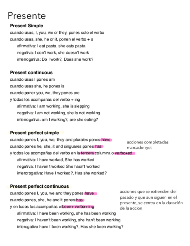 todos los tiempos en presente y pasado