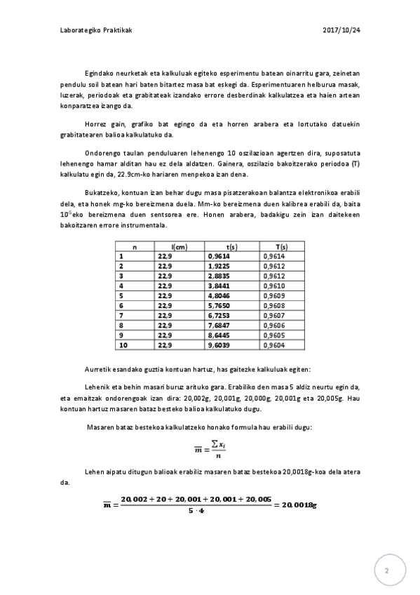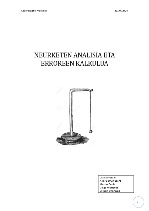 He publicado nuevos apuntes de 1º Fundamentos Físicos de la Ingeniería: Lehenengo laborategia (pendulua).pdf