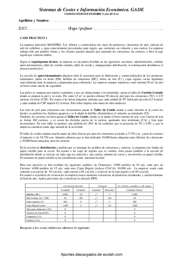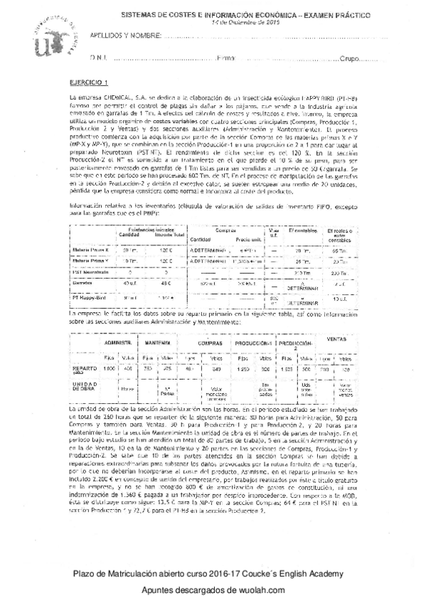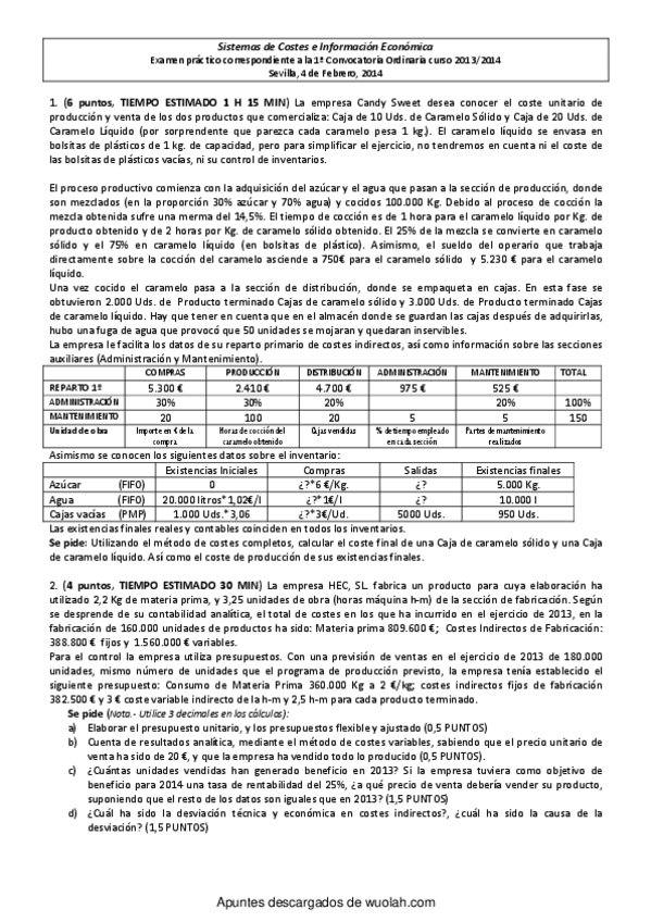 He publicado nuevos examenes de 2º Sistemas de Costes e Información Económica: Exámenes Prácticos y Test varios años