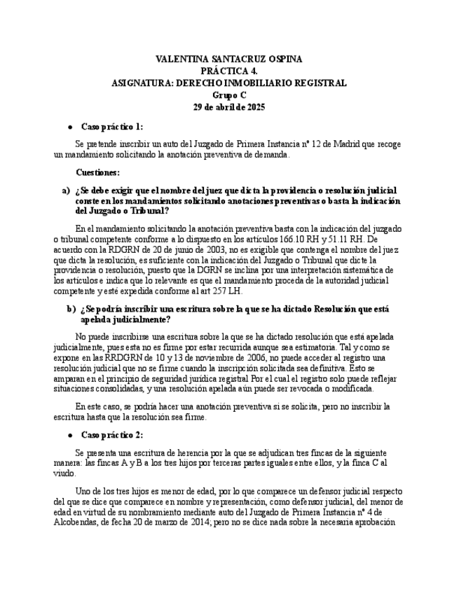 He publicado nuevos practicas de 4º Derecho Inmobiliario Registral: Prácticas inmobiliario registral