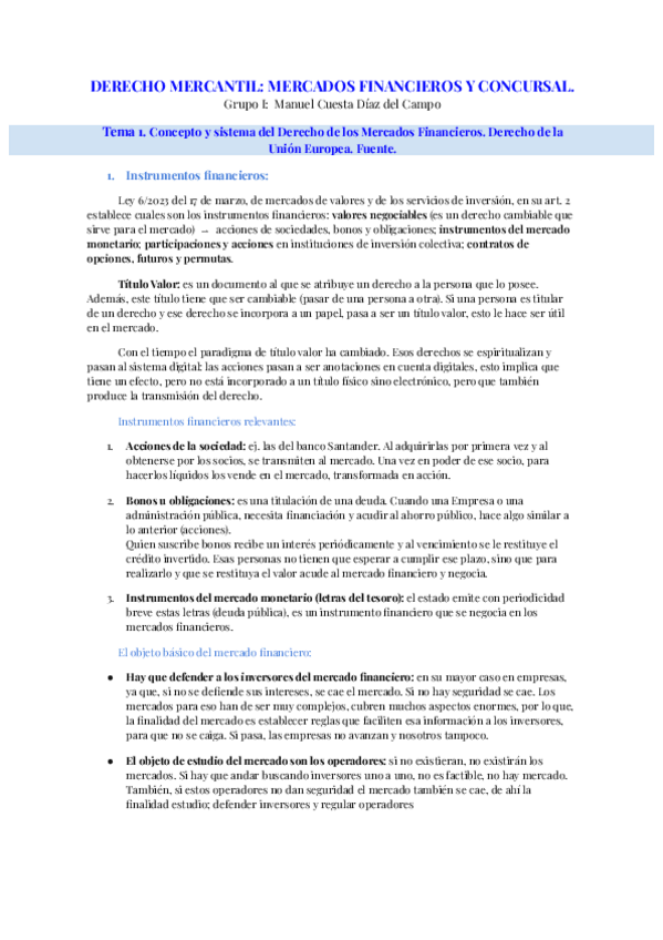 DERECHO MERCANTIL: Mercados Financieros y concursal