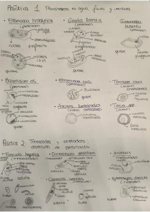 APUNTES Y DIBUJOS COMPLETOS DE PARÁSITOS PARA RECONOCER EN MICROSCOPIO