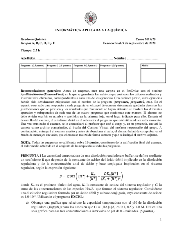 He publicado nuevos examenes de 1º Informática Aplicada a la Química: Exámenes 2020