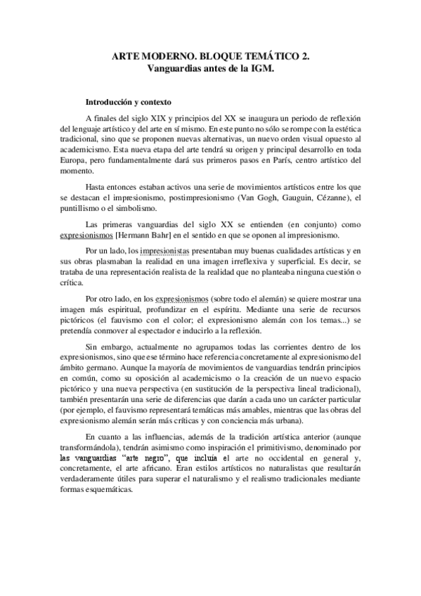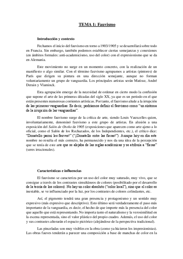 Introducción + 4 temas: Fauvismo, Cubismo, Expresionismo y Futurismo.