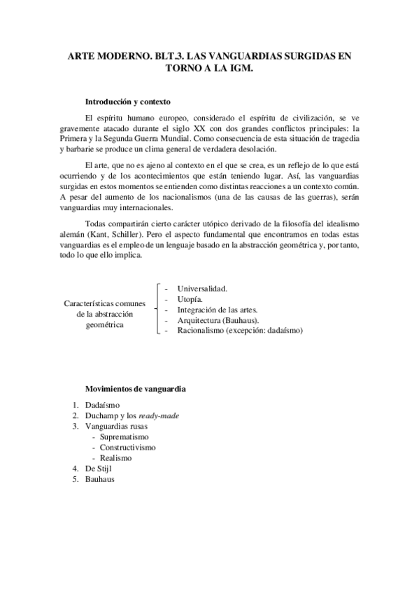 Intro + 4 temas: Dadaísmo, Duchamp, Vanguardias rusas y De Stijl