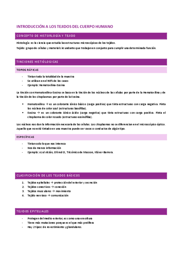 Tema 1: introducción a los tejidos del cuerpo humano. Tema 2: tejido epitelial. Tema 3: tejido conectivo.