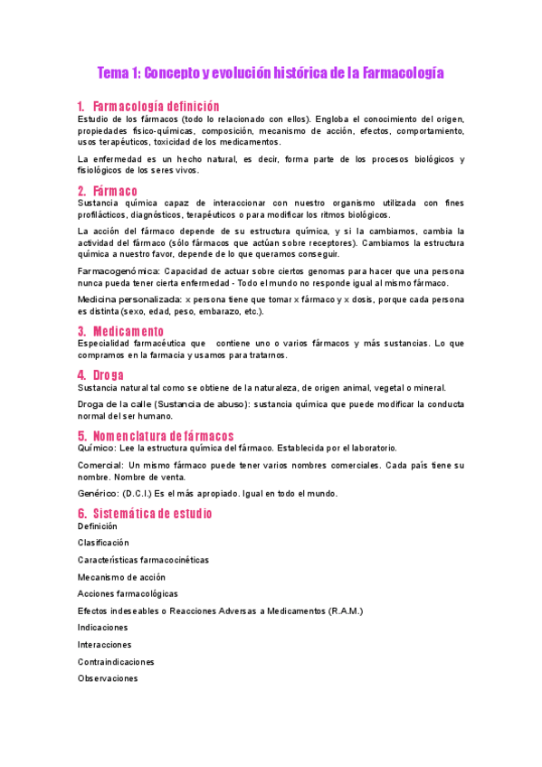 TEMARIO FARMACOLOGÍA