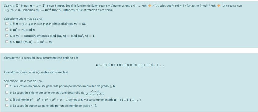 He publicado nuevos examenes de 3º Álgebra Aplicada y Criptografía: EXAMEN FEBRERO 2021