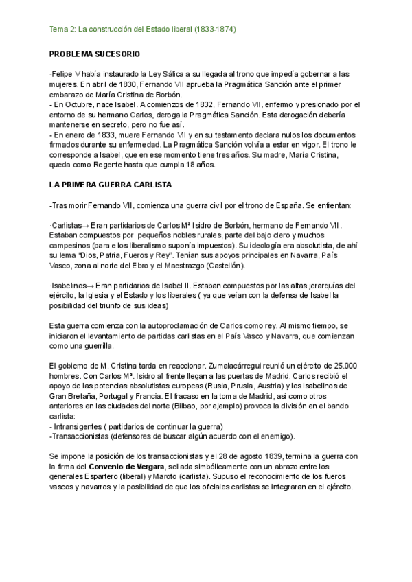 Tema 2 Isabel II (saqué un 9,8 en la Pau de Historia de España)