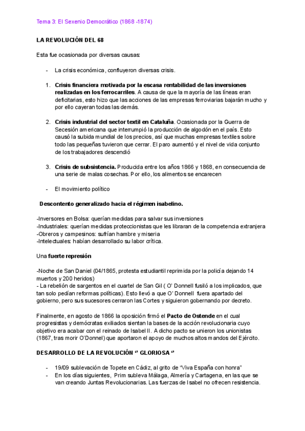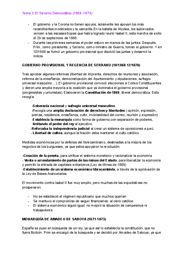 Tema 3: Sexenio democrático (tema que me cayó este año en la Evau, saqué un 9,8).