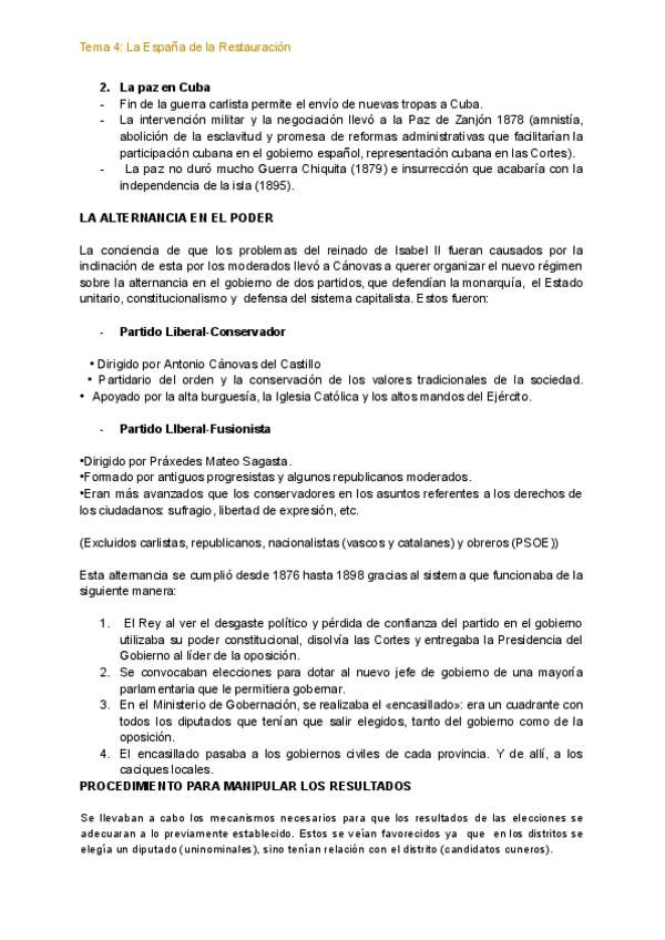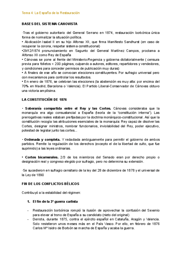 Tema 4: La restauración borbónica (tema fácil y simple, saqué un 9,8 en la PAU)