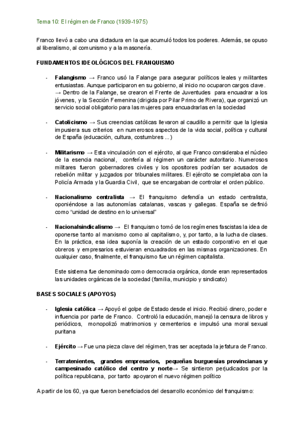 Tema 10: Franquismo (saqué un 9,8 en la pau de historia).