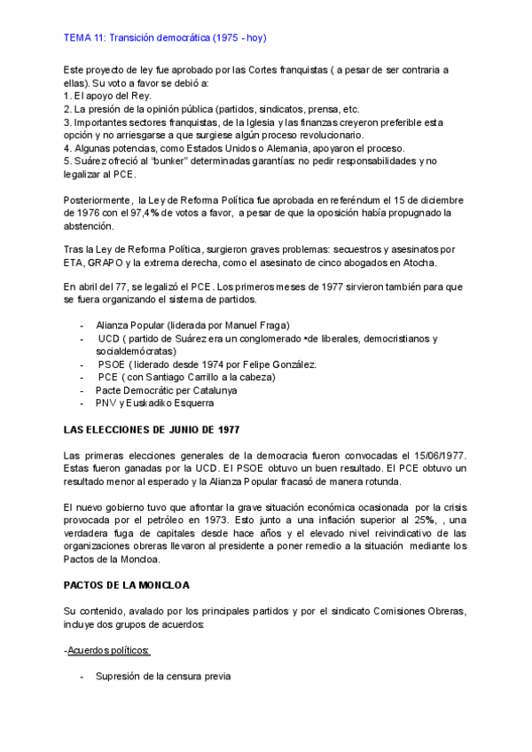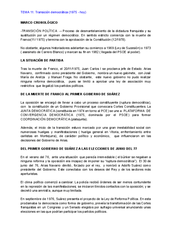 Tema 11: La transición democrática (saqué un 9,8 en la PAU de historia de España).