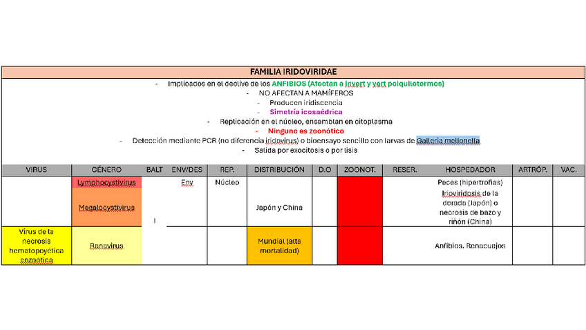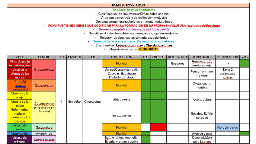 He publicado nuevos apuntes de 2º Microbiología e Inmunología: Tablas virus tarde