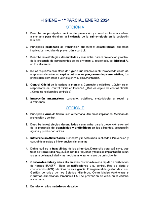 He publicado nuevos apuntes de 4º Higiene, Inspección y Seguridad Alimentaria: EXÁMENES 2024