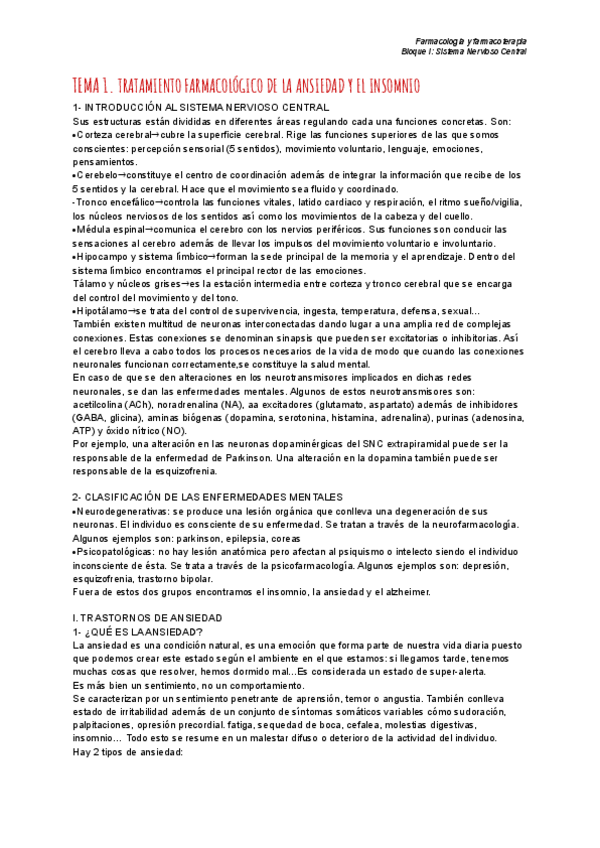 He publicado nuevos apuntes de 4º Farmacología y Farmacoterapia: TEMARIO-SISTEMA NERVIOSO CENTRAL