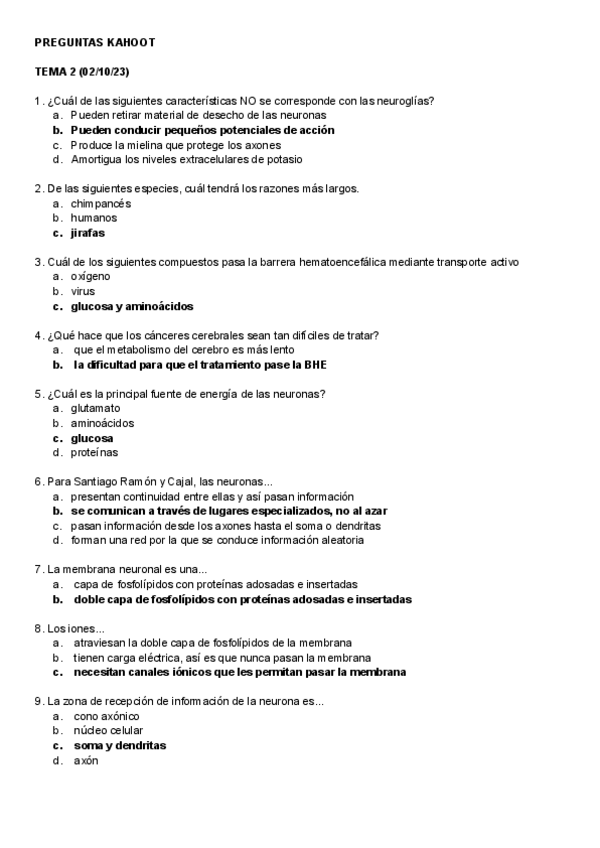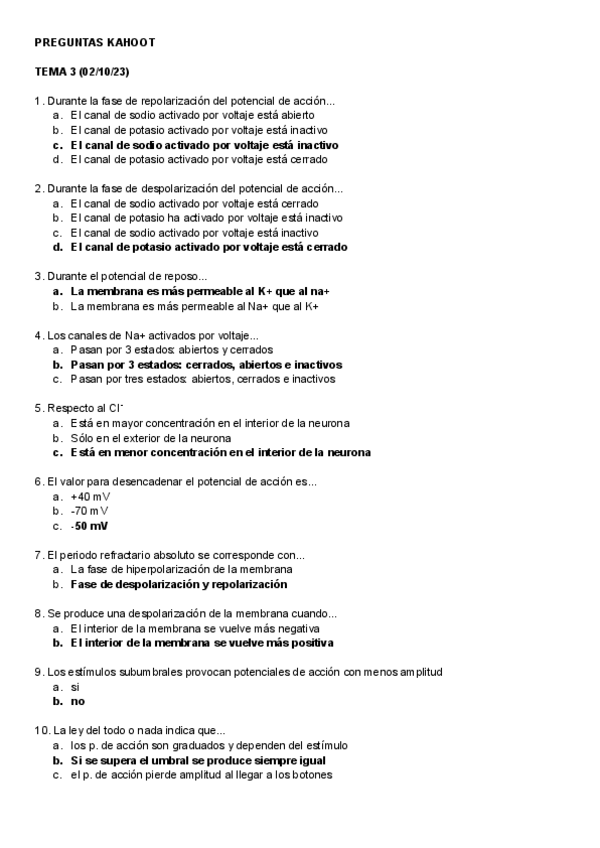 Son preguntas con la respuesta del kahoot que ha dicho que alguna puede caer en el examen