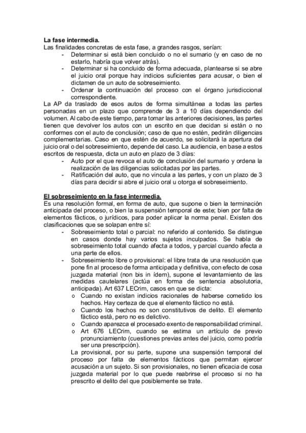 La fase intermedia, sobreseimiento, escritos de calificación y conformidad