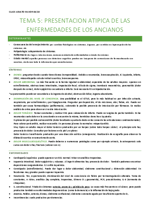 Subidos resumenes de adulto mayor para estudiar de cara al examen, sin incluir parkinson, demecias y cardiopatia isquemica.