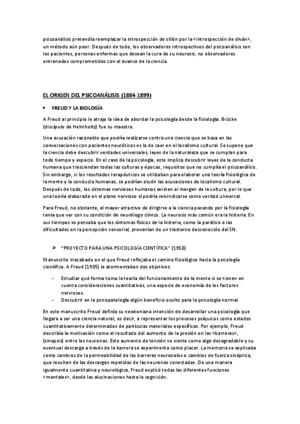 Hay un pequeño fallo al final del punto de "proyecto para una psicología científica". La corrección es: Las neurosis reales eran verdaderas enfermedades físicas causadas por exceso o deficiencia de determinadas toxinas nerviosas, originadas habitualmente