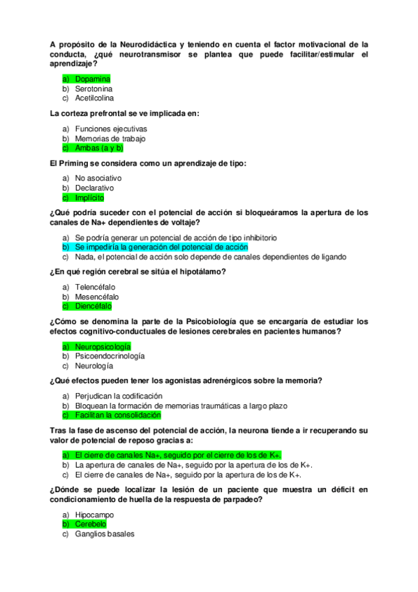 Algunas de las preguntas del examen de Rubén Miranda en 2021 (casi siempre entran). Las respuestas azules están en duda.