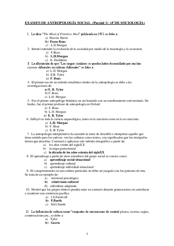 He publicado nuevos examenes de 1º Introducción a la Antropología Social: Exámenes Finales Varios