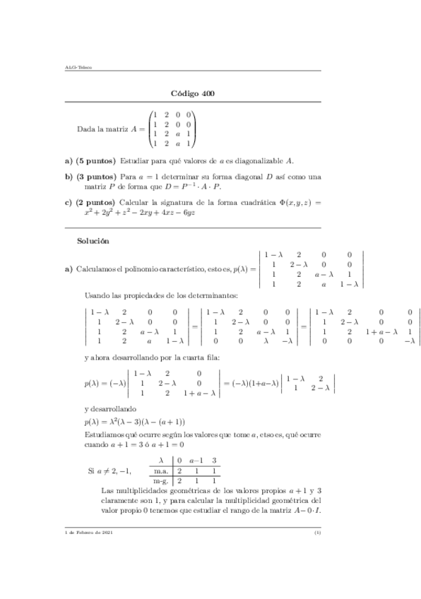 He publicado nuevos examenes de 1º Álgebra Lineal y Geometría: Ejercicios-Examenes-Diagonalizacion.pdf