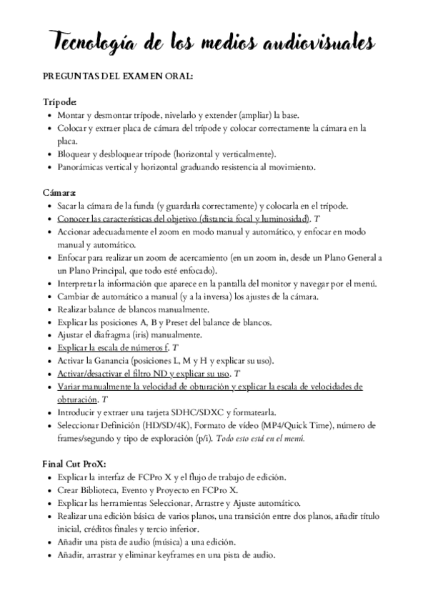 Teoría que pregunta el profesor en la prueba práctica individual de cámaras, edición...